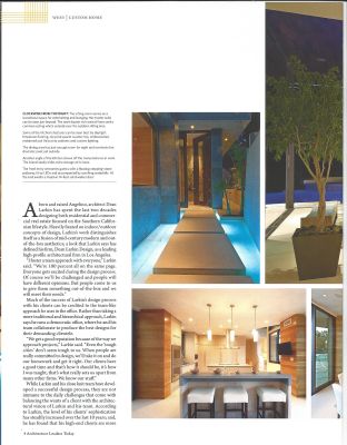 A born and raised Angelino, architect Dean Larkin has spent the last two decades designing both residential and commercial real estate focused on the Southern Californian lifestyle. Heavily fixated on indoor/outdoor concepts of design, Larkin’s work distinguishes itself as a fusion Of mid-century modern and out-of-the-box aesthetics; a look that Larkin says has defined his firm, Dean Larkin Design, as a leading high-profile architectural firm in Los Angeles.