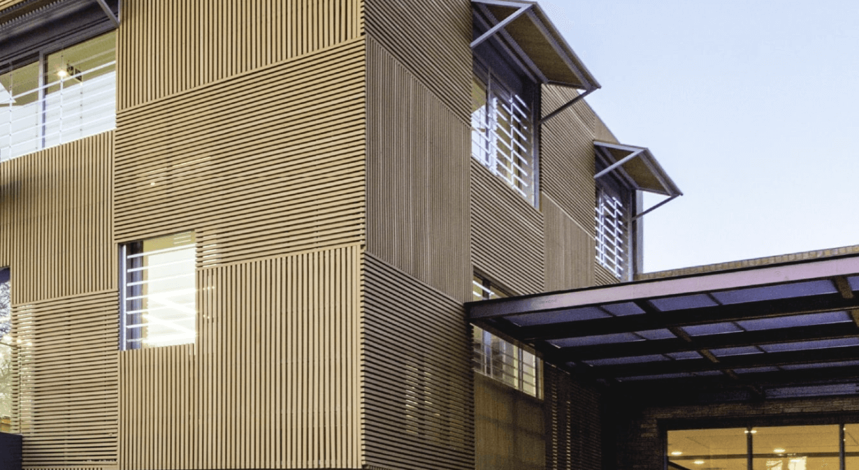 Accoya makes a great acetylated wood product. The company makes an ultra-high performance sustainable wood that can be used for wood siding, decks, windows and doors. The company says the product out-performs hardwood siding, and we have been very pleased with the results in our projects, like Latimer. Accoya has a process using their local, sustainable pine, that makes the product durable. The process includes a reaction with acetic anhydride at high heat, causing it to have more or moisture resistant acetyl groups and thus be more resistant to water. The process also helps the product hold the color better, and the color goes all the way through! They stand behind the product with a 50-year warranty for above ground uses, and 25 years for in ground or fresh water uses. We used this product in key rooms of the Latimer project, both inside and outside, and after 5+ years, there has been no fading!
