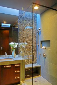 The expansion of the house, along with the soaring roof-line that seems to leap off the site, arose in direct response to the hilltop location and surrounding views of the Getty, the Pacific Ocean and Downtown Los Angeles. The pool was relocated from an existing courtyard to its current hillside location to highlight this dramatic setting. Windows and pocketing glass walls were used to connect the house more effectively to the new outside entertainment decks. Finally, to complete the triad, a guesthouse was sited to enjoy both the views and the pool.