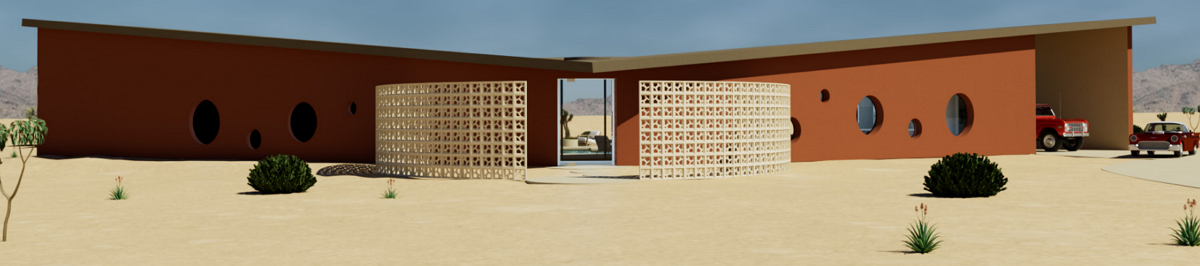 From an aerial view, the yucca moth inspiration is obvious. The home is a V-shape, with two wings. One contains public rooms, and one houses the bedrooms. They open out to the pool area, which represents the tail of the moth. On the street side, at the tip of the V, is a curved fence around a courtyard, which represents the curving arms of the moth. The home will have round windows that are inspired by the moth eggs. Dean says the home design is simple, but with high architecture applied. The details will make this home something special.